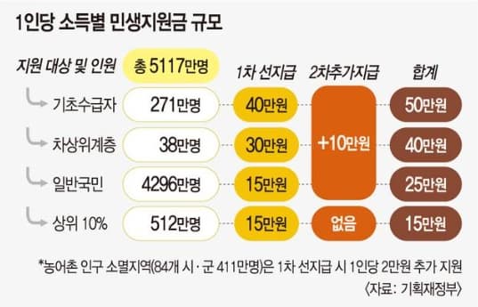 | 일반 국민 | 소득 중위~하위 90% | 15만원 | 10만원 | 25만원 |