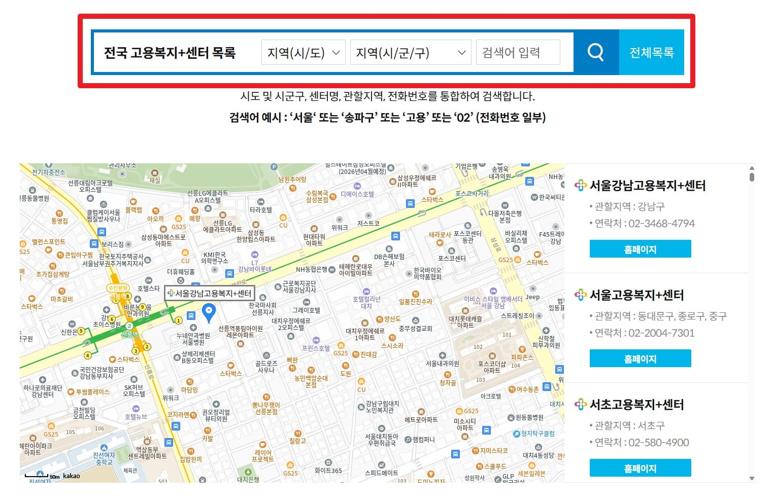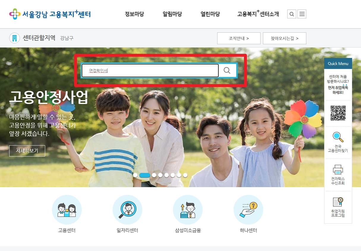 3.관할지역의 복지센터 홈페이지 클릭하여 접속 후, 검색창에 '면접확인서' 검색