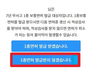 - 무사고 여부 확인 후, 1종으로 전환 가능한지 선택 가능