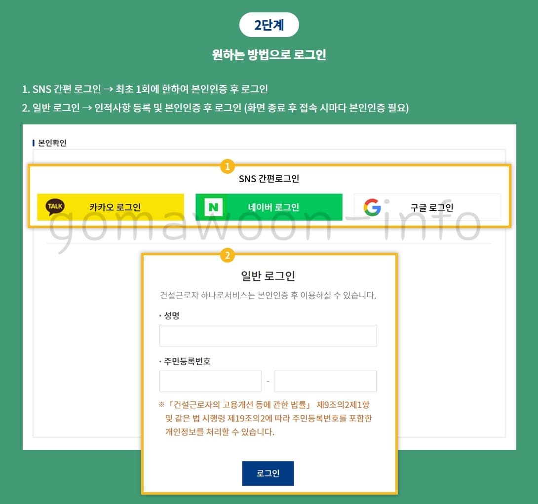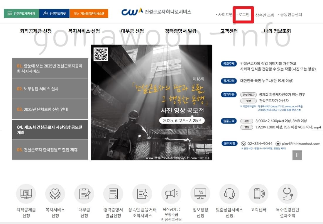 1. 건설근로자 하나로서비스 홈페이지 접속