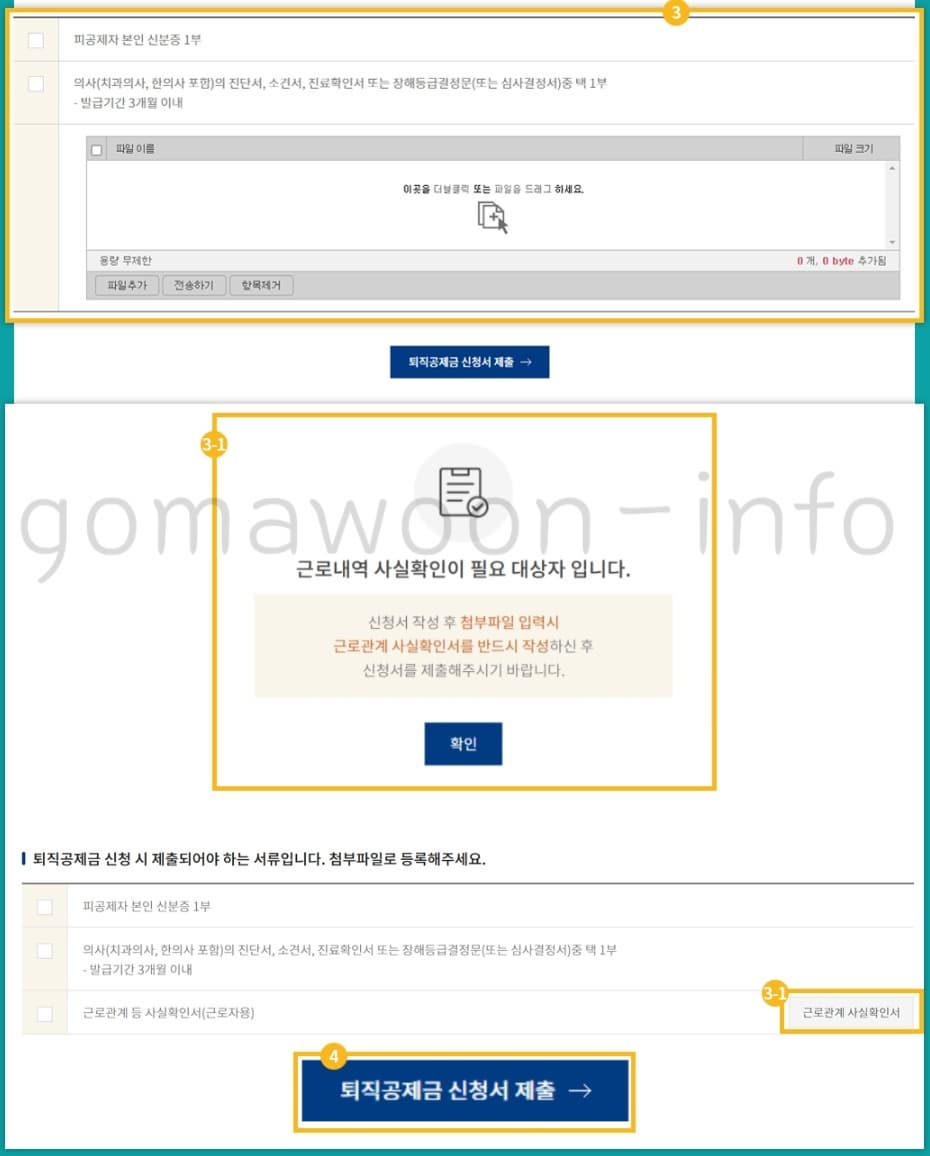 - 소멸 시효 5년: 퇴직일로부터 5년 이내 신청해야 함