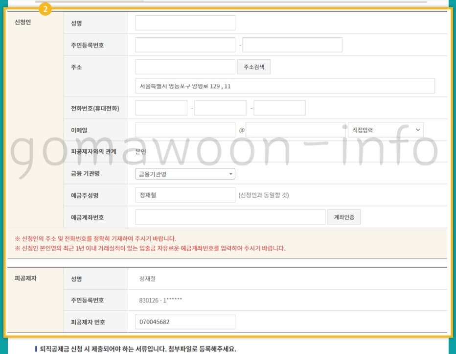 - 퇴직 후 60일 경과 후 신청 가능