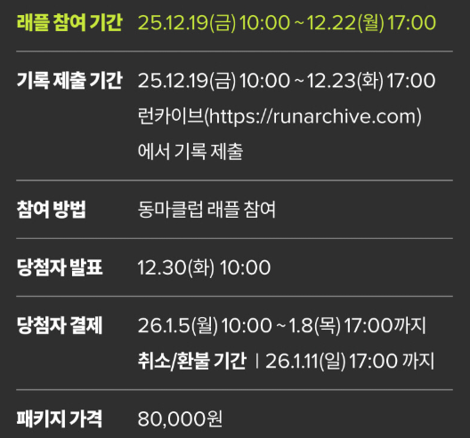 래플 접수 2025.12.19(금) 10:00 ~ 12.22(월) 17:00 동마클럽 신청