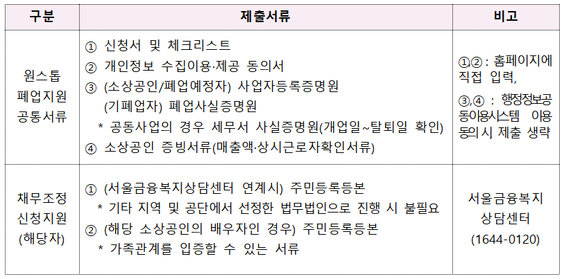 | 원스톱 폐업지원 공통 서류 |