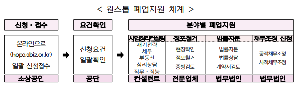 - 폐업 과정에서 필요한 정보 제공 및 각종 비용·행정 절차 지원